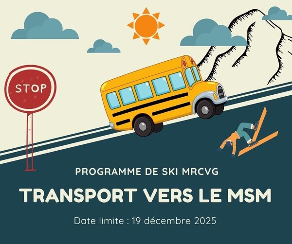 En collaboration avec la MRC Vallée-de-la-Gatineau, les inscriptions pour le 𝐭𝐫𝐚𝐧𝐬𝐩𝐨𝐫𝐭 vers le mont Sainte-Marie pour le programme de Ski Alpin 2026 sont maintenant commencées.