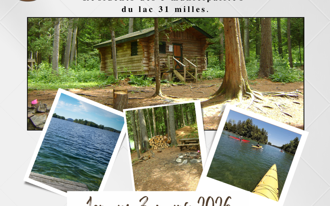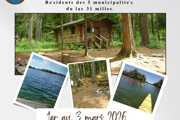 Comme à chaque année, les résidents des cinq municipalités riveraines du lac bénéficient d'une période de réservation prioritaire, avant l'ouverture au public, lors de laquelle les contribuables pourront réserver des sites dans le parc. Nous invitons les contribuables à faire leur réservation sur info@parc31milles.com accompagnée d'une copie de leur compte de taxe. La réservation sera transposée sur le site de réservations avant l'ouverture officielle au grand public.
